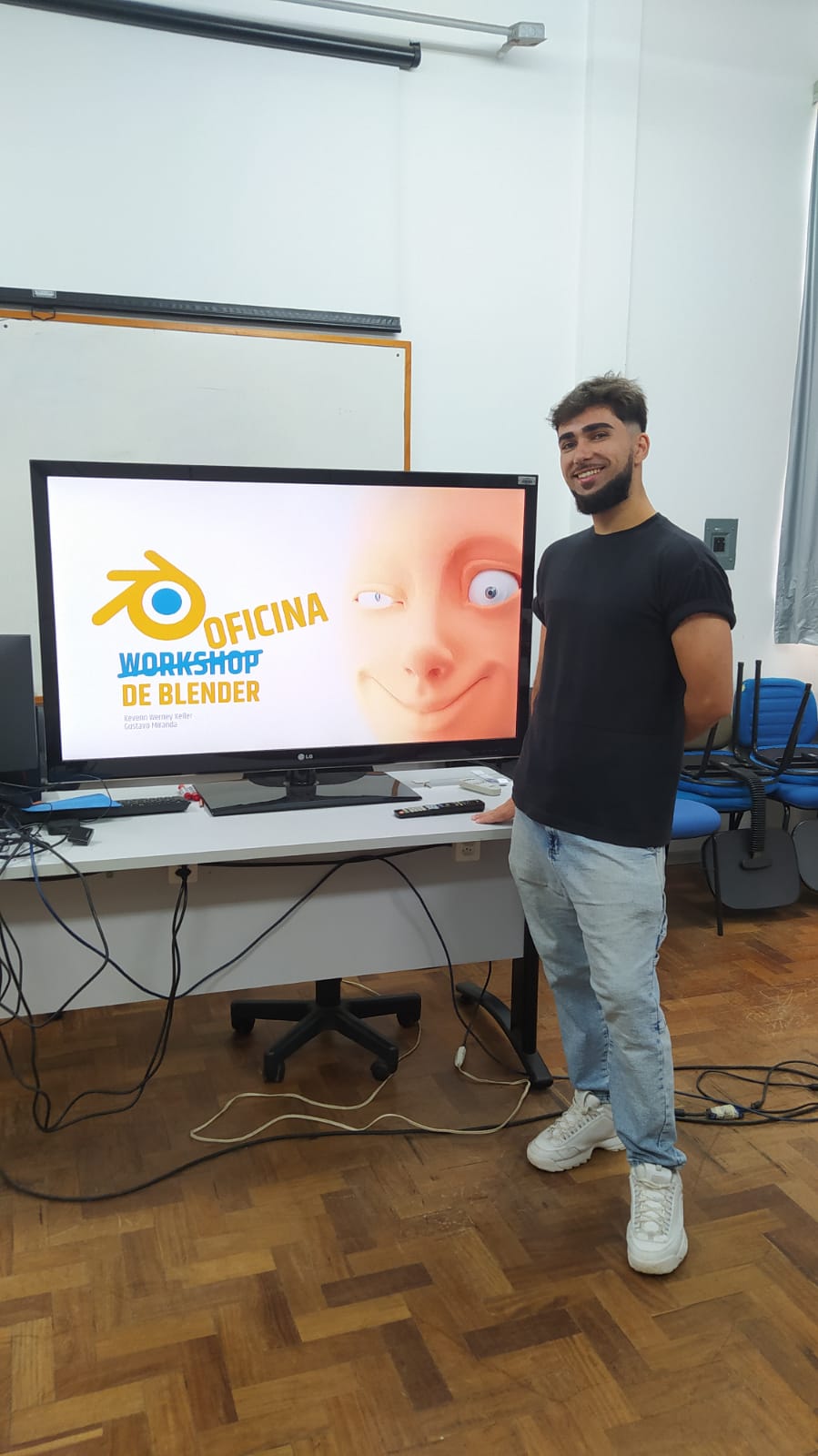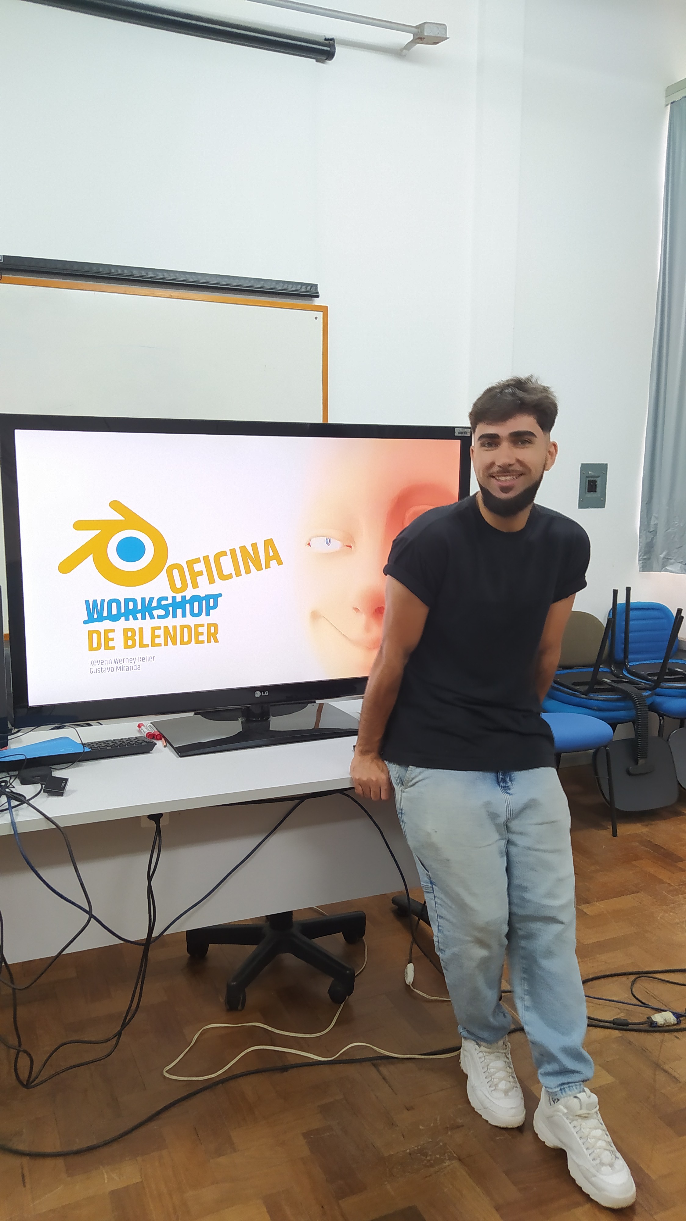 Durante minha graduação na UFSM, vivi inúmeras experiências incríveis. Destaco neste caso a oportunidade de ministrar uma oficina na Semana Acadêmica do Desenho Industrial. No dia 28 de novembro, junto ao meu amigo Gustavo Miranda, tive o privilégio de conduzir a oficina Introdução à Modelagem 3D com Blender.