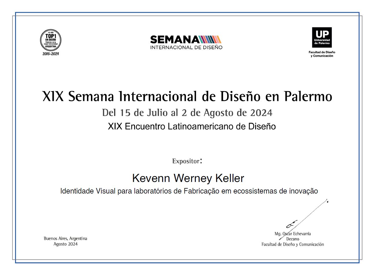Há um ano atrás, eu tive a oportunidade de participar do Encuentro Latinoamericano de Diseño, em Buenos Aires. Neste evento, eu pude conhecer um pouco do design produzido na América do Sul. Fico muito contente em poder ter participado da edição de 2024, a XIX Semana Internacional de Diseño, mas agora como expositor. As trocas e feedbacks que eu recebi permitiram um refinamento da pesquisa que eu venho desenvolvendo, auxiliando a delimitação do meu trabalho de conclusão de curso.