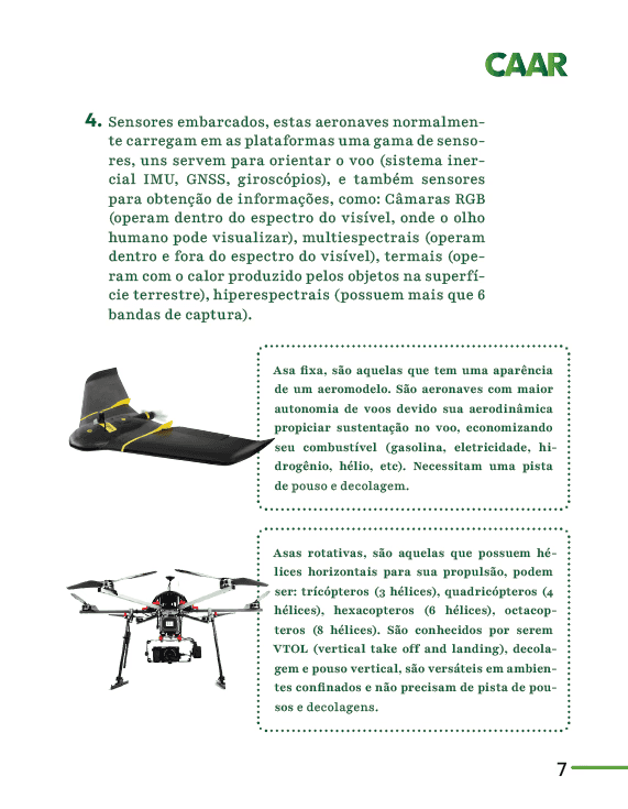 O curso de drones - CAAR da UFSM, tendo como objetivo habilitar profissionais para condução de equipamentos aéreos não tripulados, precisava de uma apostila didática para expor conceitos váriados da área. Portanto, este projeto surgiu como resposta a este problema.