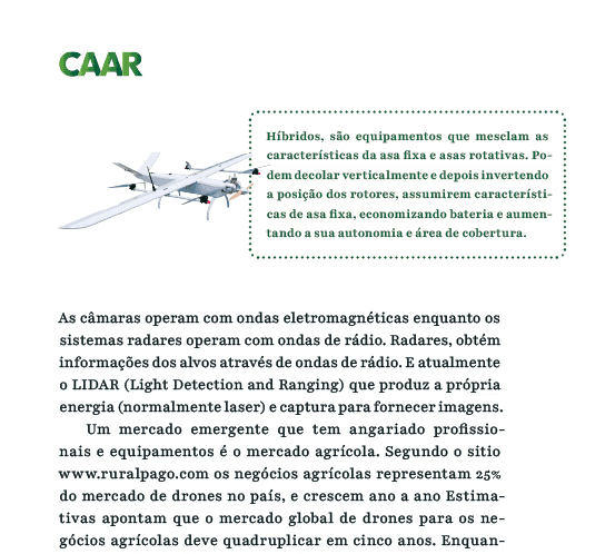 Com financiamento do Colégio Politécnico da UFSM, o curso de drones CAAR visa habilitar profissionais para pilotar drones na agricultura. O projeto editorial incluiu o desenvolvimento de uma apostila digital que organiza imagens e textos, garantindo uma comunicação didática dos quatro módulos do curso.