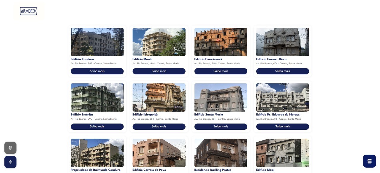 Desenvolvido no contexto de Trabalho de Conclusão de Curso em Desenho Industrial na UFSM, o site ARqDÉCO é uma aplicação Web que utiliza Realidade Aumentada e Design Emocional para valorizar o patrimônio Art Déco de Santa Maria/RS. Através de uma rota interativa, o projeto busca resgatar a memória e fortalecer o sentimento de pertencimento dos cidadãos.