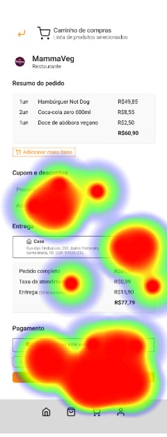 Parte do teste de usabilidade consistiu em testar o aplicativo com mapas de calor, identificando os pontos de dúvidas e incertezas dos usuários ao usar o aplicativo.