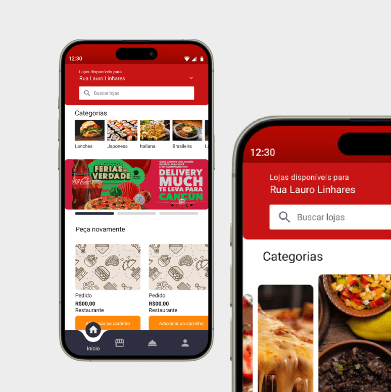 O projeto visou redesenhar a interface do aplicativo da Delivery Much, corrigindo inconsistências de UI, aprimorando a usabilidade e alinhando a identidade visual. Foram realizados testes com usuários para validar as melhorias, e os resultados, apresentados à empresa, contribuíram para otimizar a experiência e a acessibilidade no app.