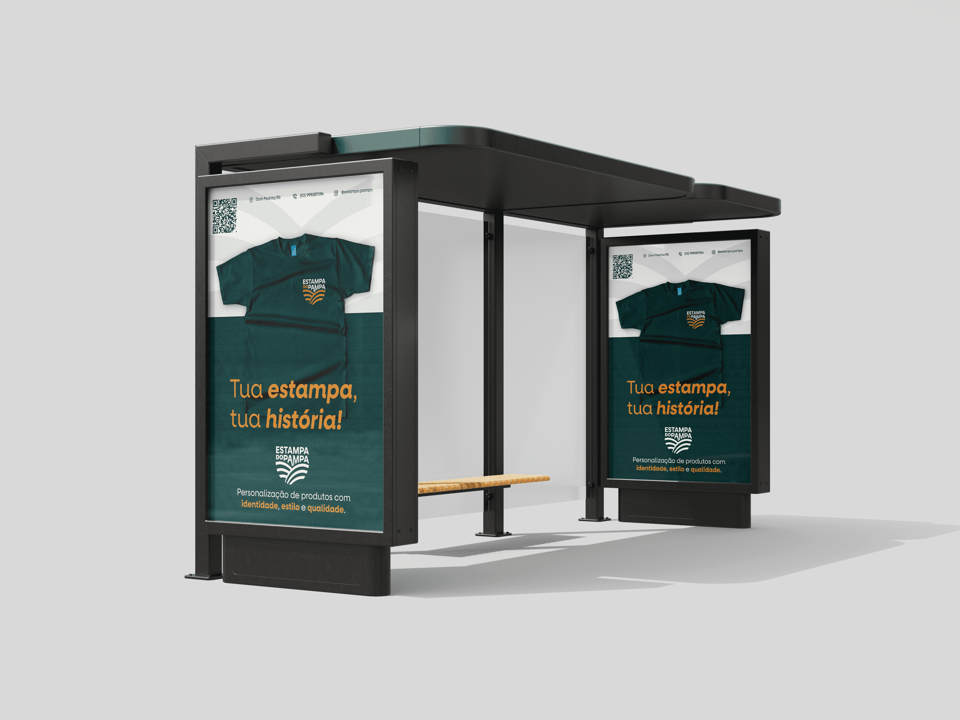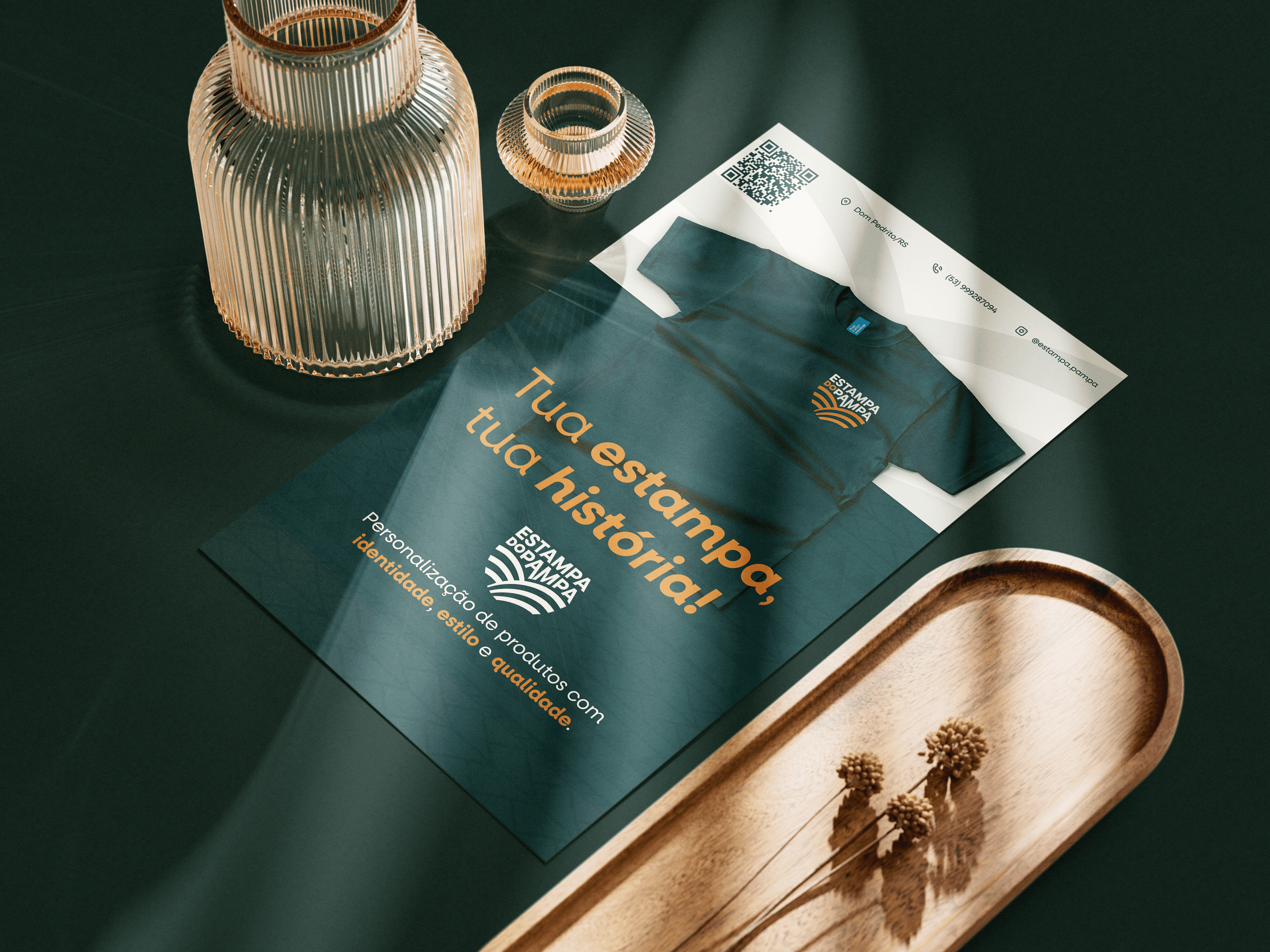 Desenvolvimento de identidade visual completa para uma nova empresa do setor de estamparia, com posicionamento estratégico voltado ao agronegócio. O projeto foi concebido para o lançamento oficial da marca, exigindo uma linguagem visual que transmitisse solidez e conexão direta com o público-alvo rural. O escopo do trabalho abrangeu desde a criação da marca até o desdobramento em materiais de apoio essenciais para a prospecção comercial, incluindo banners, cartões de visita, folders e um catálogo digital de produtos. A identidade foi aplicada com sucesso durante a estreia da empresa em um evento do setor em Dom Pedrito/RS.