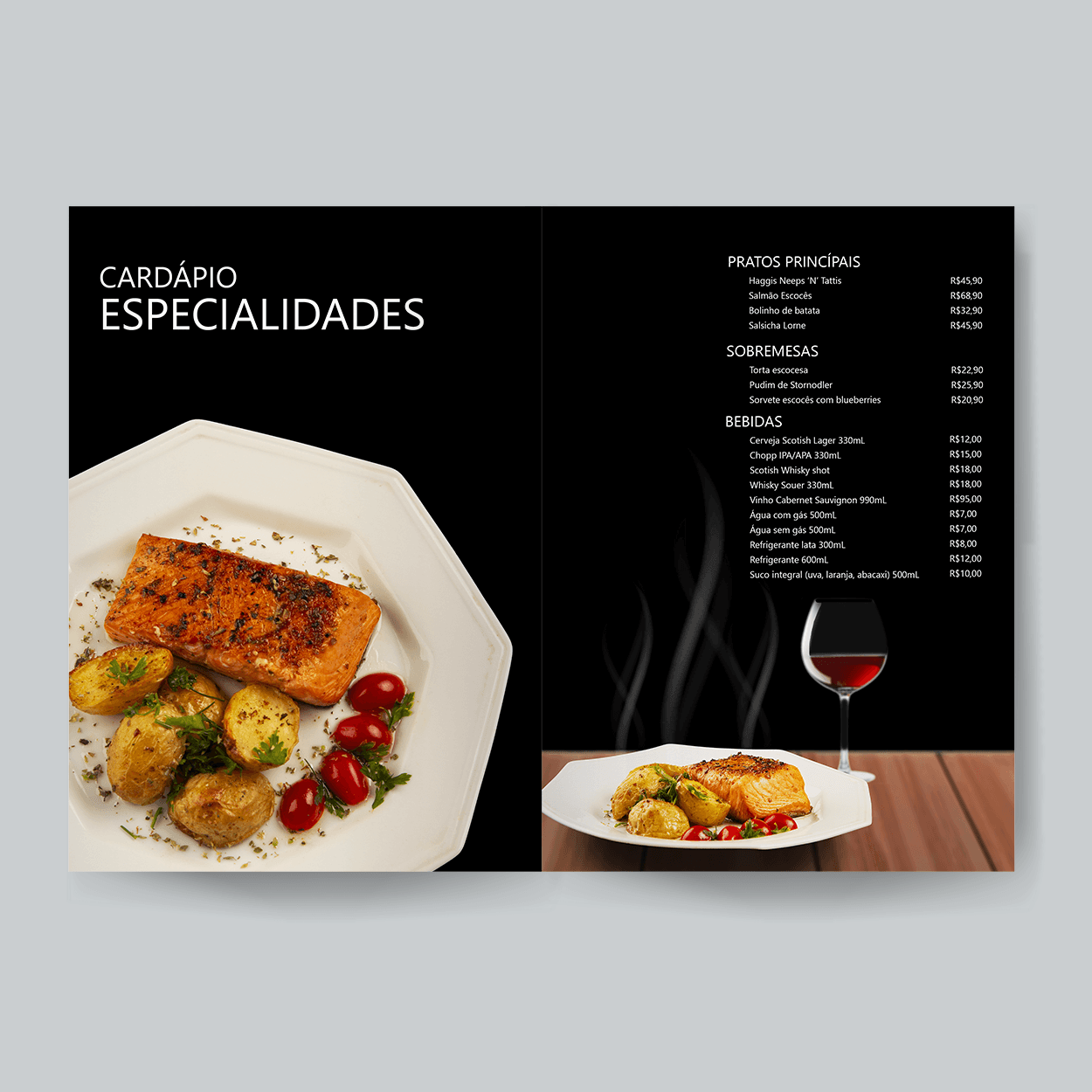 O objetivo deste projeto, baseado em princípios semióticos de Charles Pierce, foi desenhar todos os elementos gráficos de um restaurante com temática Escocesa.