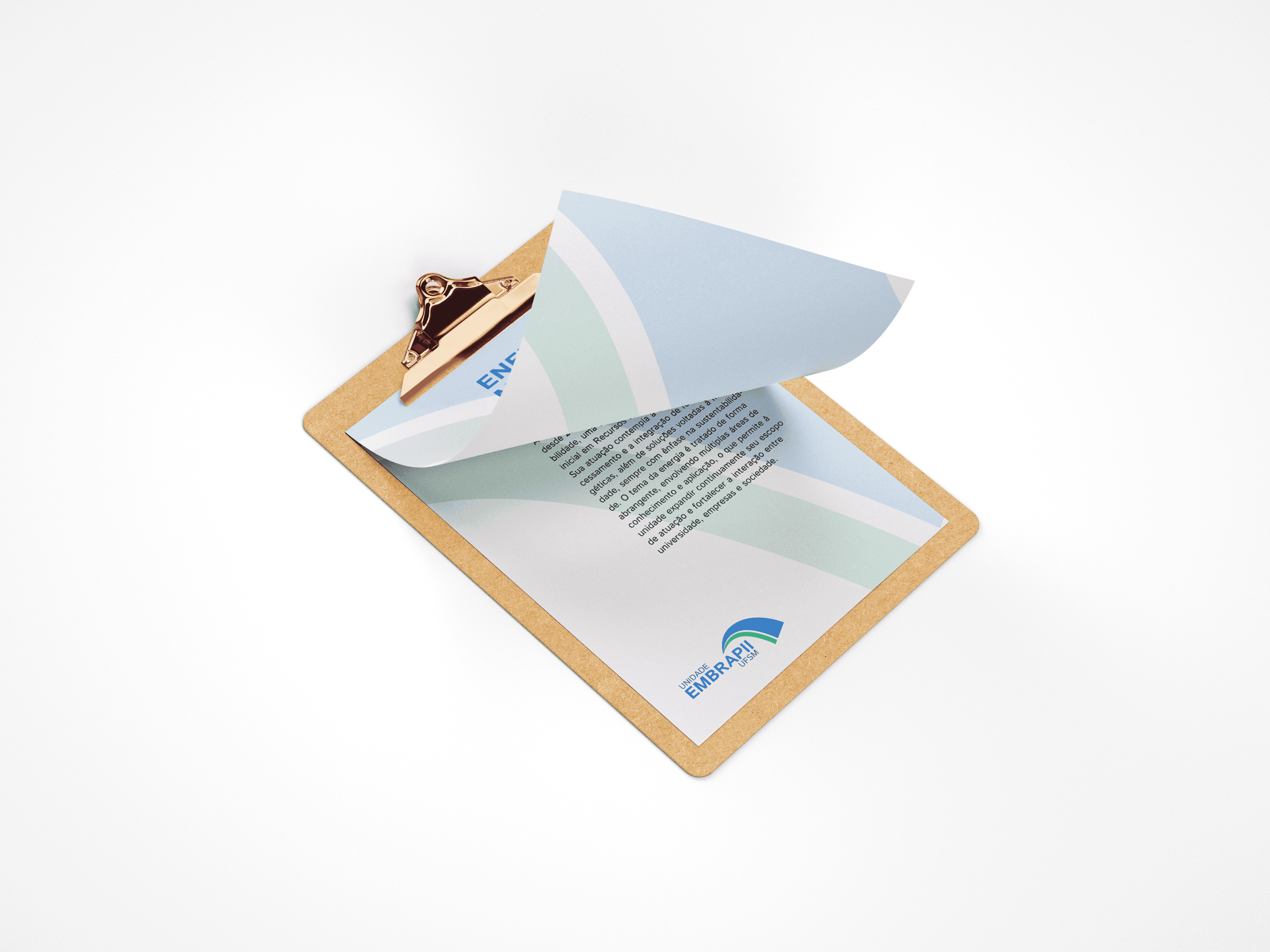 Aplicação da identidade visual da unidade Embrapii da UFSM em uma impressão colorida.