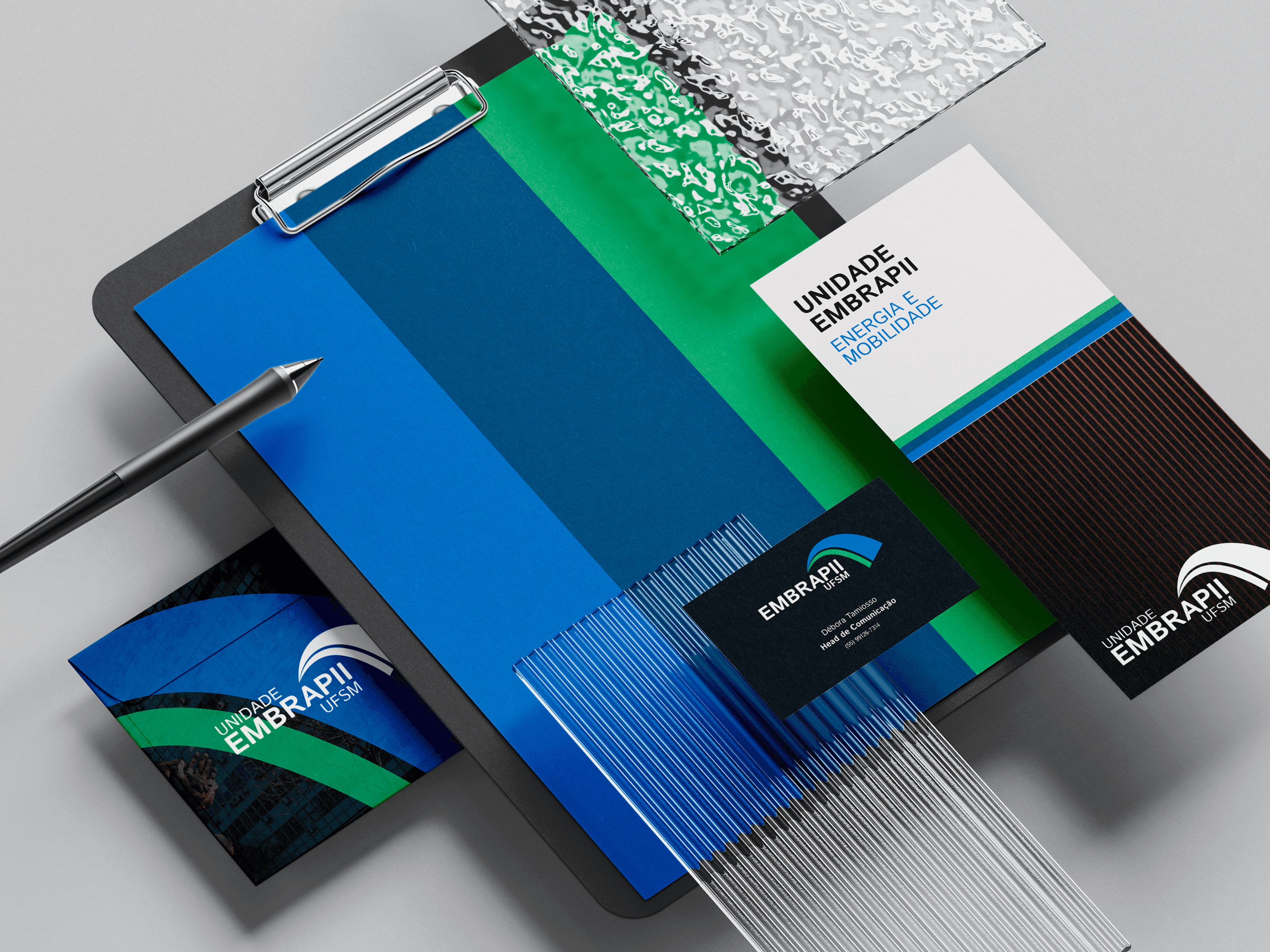 Desenvolvimento de itens de papelaria para complementar a comunicação visual da unidade Embrapii da UFSM.